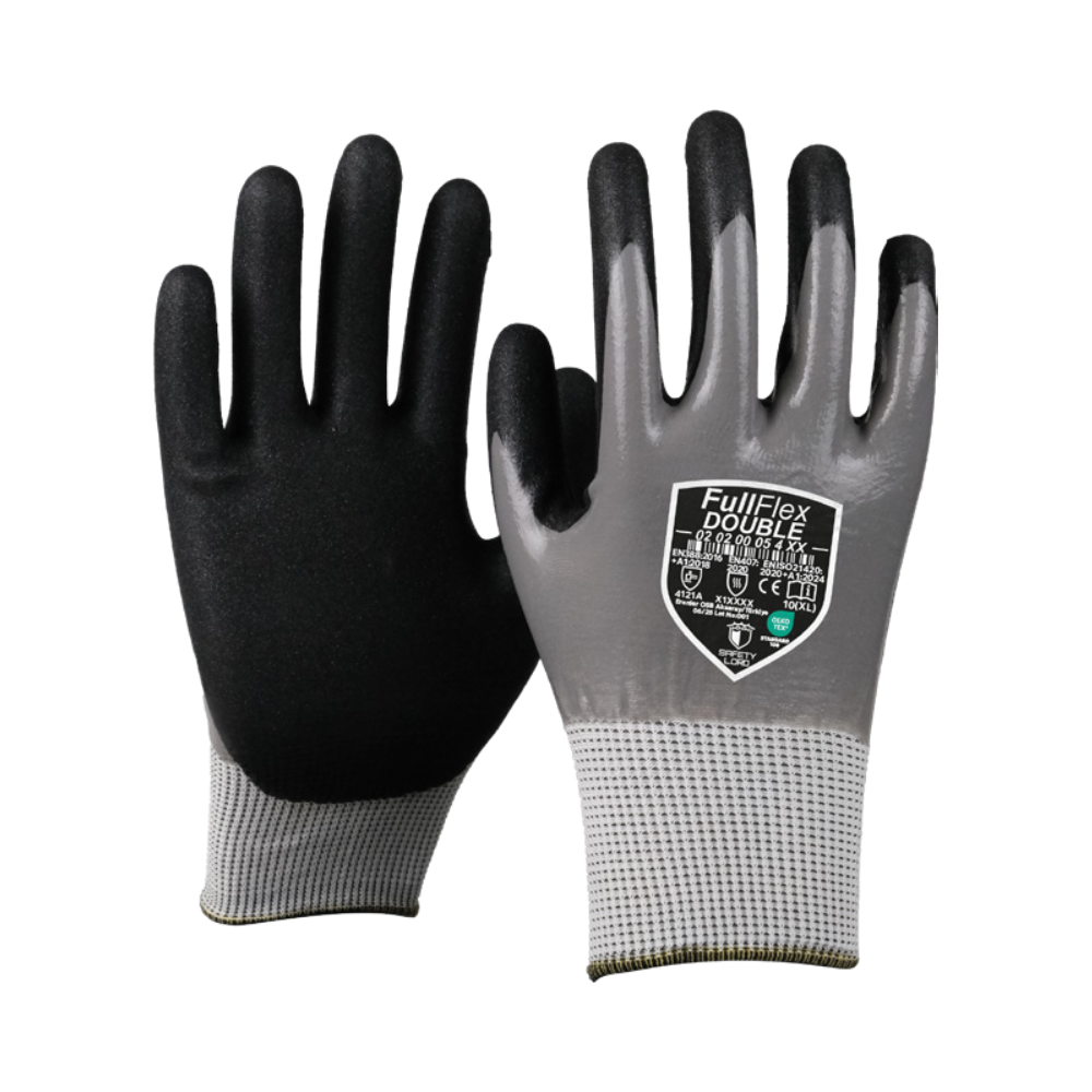 • Never compromising on ease of use thanks to its flexible structure, FullFlex Double reduces liquid and oil permeability to zero with the first coating, while guaranteeing non-slip thanks to the second coating with sandy finish technology.